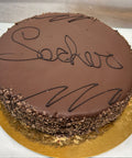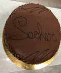 "A decadent, close-crumbed chocolate sponge filled with whipped chocolate cream, glazed with dark chocolate ganache."