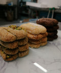 A mixed selection of Classic Almonds, Pistachio,and Dark Cocoa Amaretti - crisp outside, soft and nutty within. Naturally gluten-free and dairy-free, perfect for gifting and coffee moments.